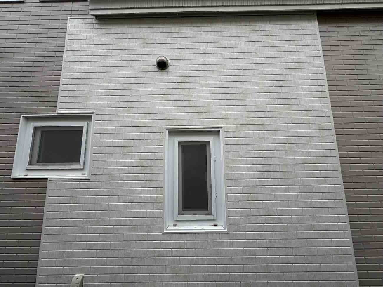 泉建装のホームページをご覧下さったご主人様よりお電話にてお問合せを頂きました。 築20年の窯業系サイディングの北面、浴室換気扇付近が劣化し、雨水も入り込んでいると思われるとのこと。 外壁サイディングの補修対応が可能かどうか。ご希望は不具合部分のサイデイング交換でいらっしゃいました。 早速、お伺いし詳細を確認。 G様は10年前に外壁塗装のお手入れをされているとの事でしたが、建物の北面、浴室周辺付W1.800×H2.300程の範囲で、外壁(サイディング)に所々膨れや剥がれがみられました。 10年前の塗装工事の際も同様の症状が見られたそうで、その際W900×H700程のサイディング張替えをされているとのお話でしたが、今回の不具合はその周りが特に激しい状況でした。