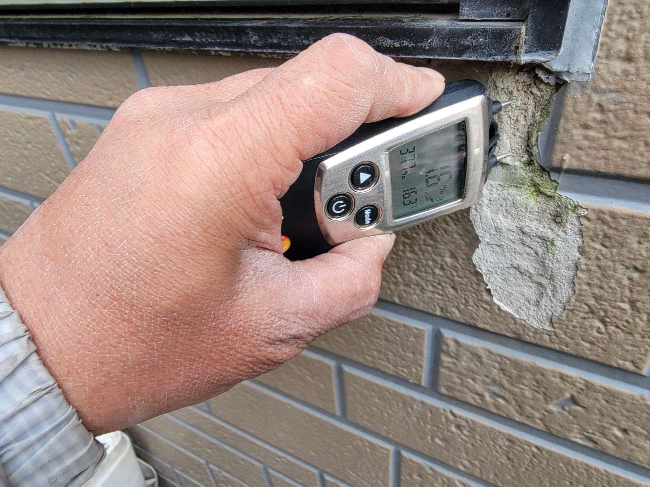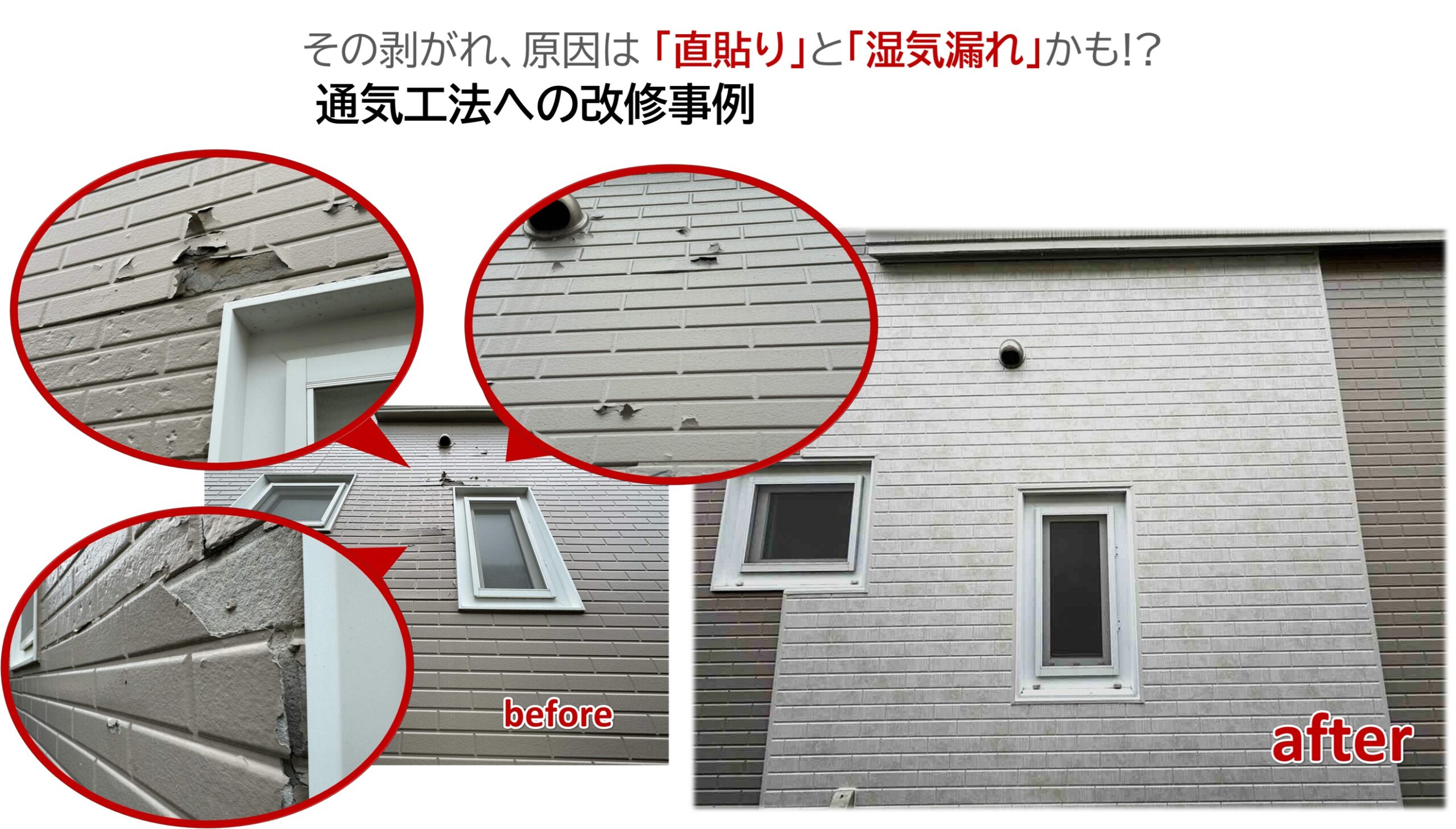 10年前の塗装工事の際も同様の症状が見られたそうで、その際W900×H700程のサイディング張替えをされているとのお話でしたが、今回の不具合はその周りが特に激しい状況でした。