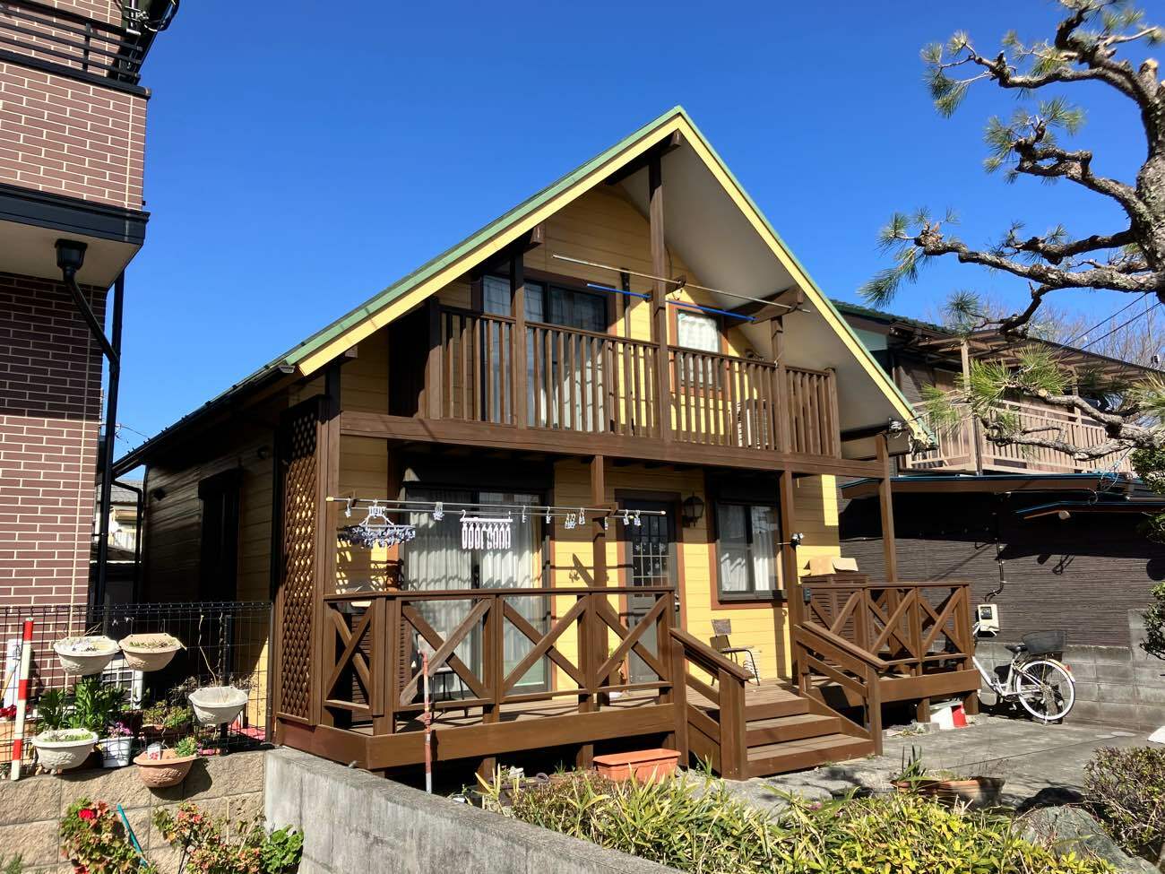 施工後:全景。 1階ウッドデッキ修繕・2階木部手すり塗装。