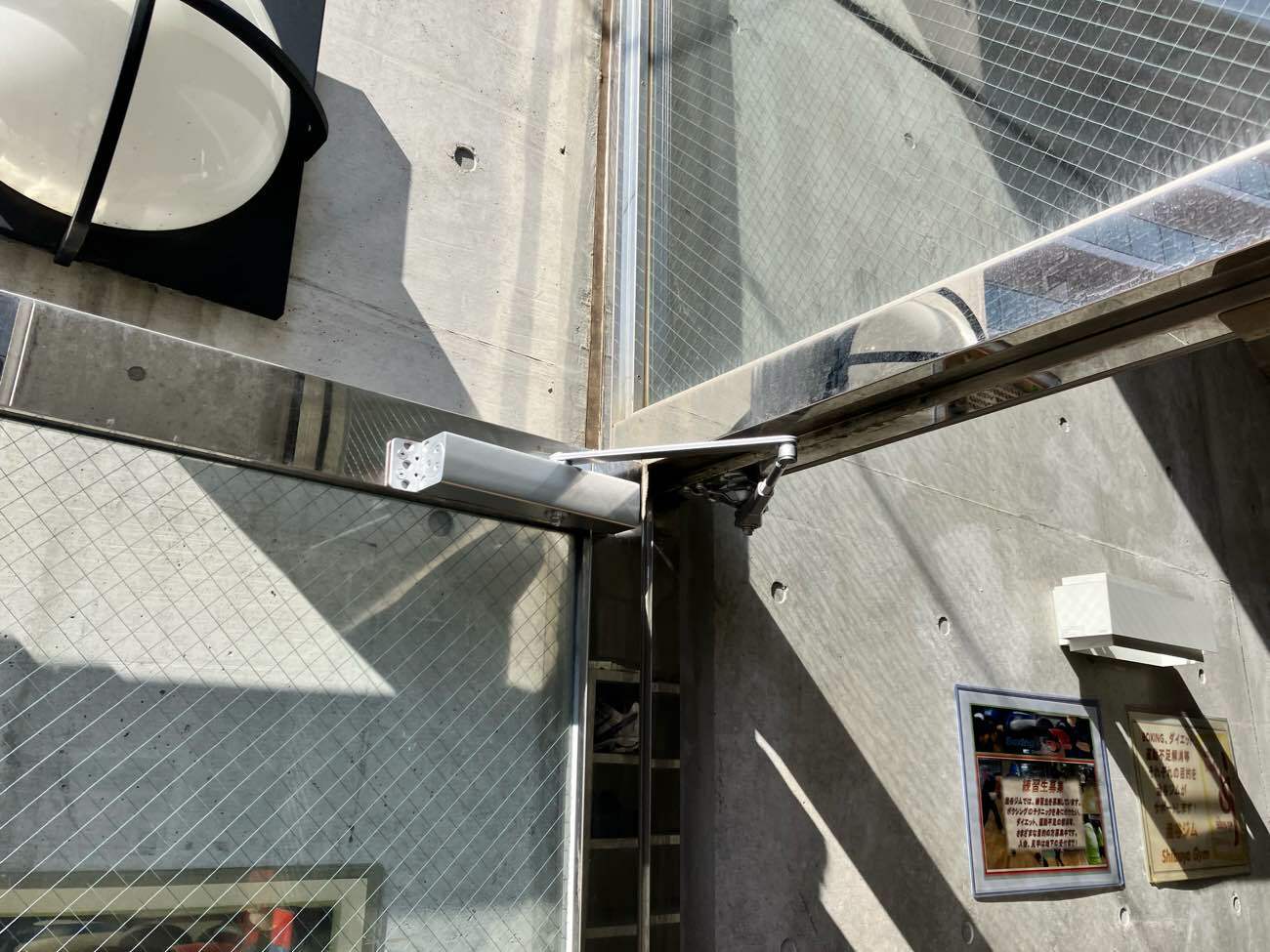 八王子市内にあるボクシングとフィットネスのジムの出入口のドアクローザーが壊れたことから、インターネットで施工業者を検索され、問い合わせのお電話を頂きました。