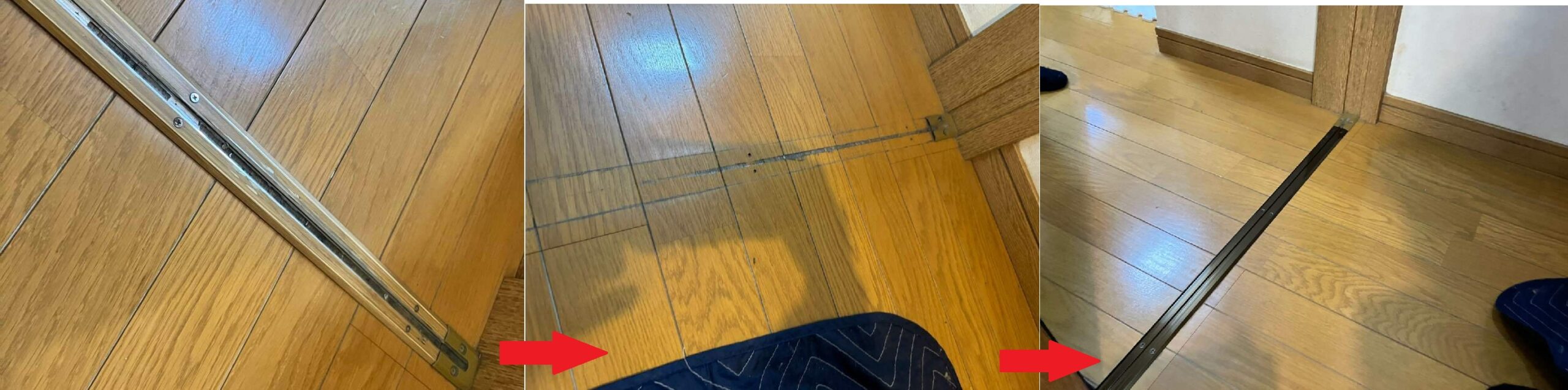 引戸レール交換:施工前⇒既存レール撤去後⇒施工後