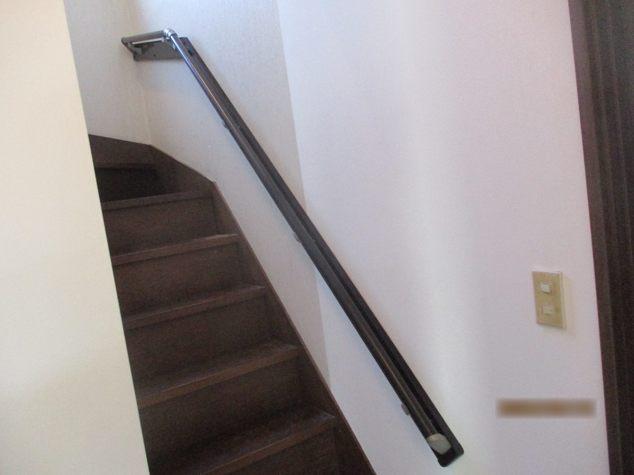 着工当日、実際に手すりを使用されるご家族様にサンプルを握っていただき、想定していた位置からより使いやすい高さ・間隔へと現場で微調整を行いました。実用性を最優先に設置方法を一部変更しましたが、予定通り1日で工事を完了しております。施工後、昇降がしやすくなったとのご確認をいただきました。