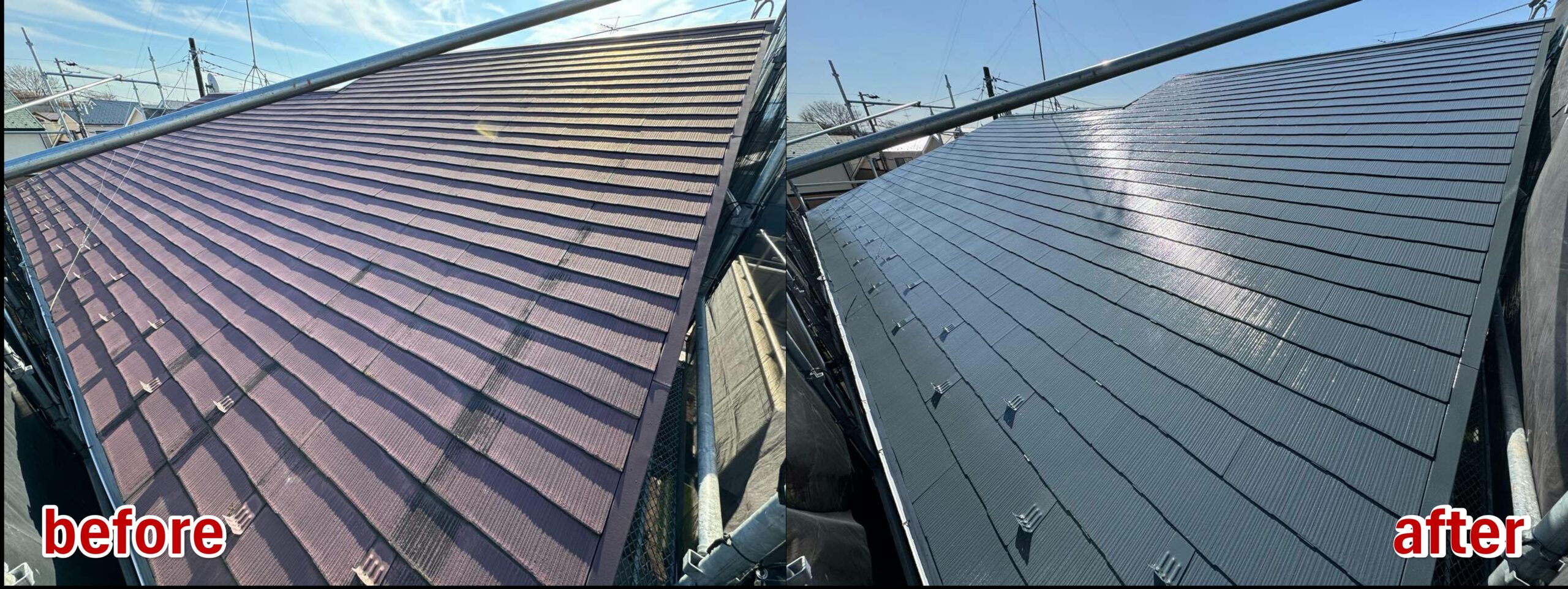 屋根塗装:施工前⇒施工後