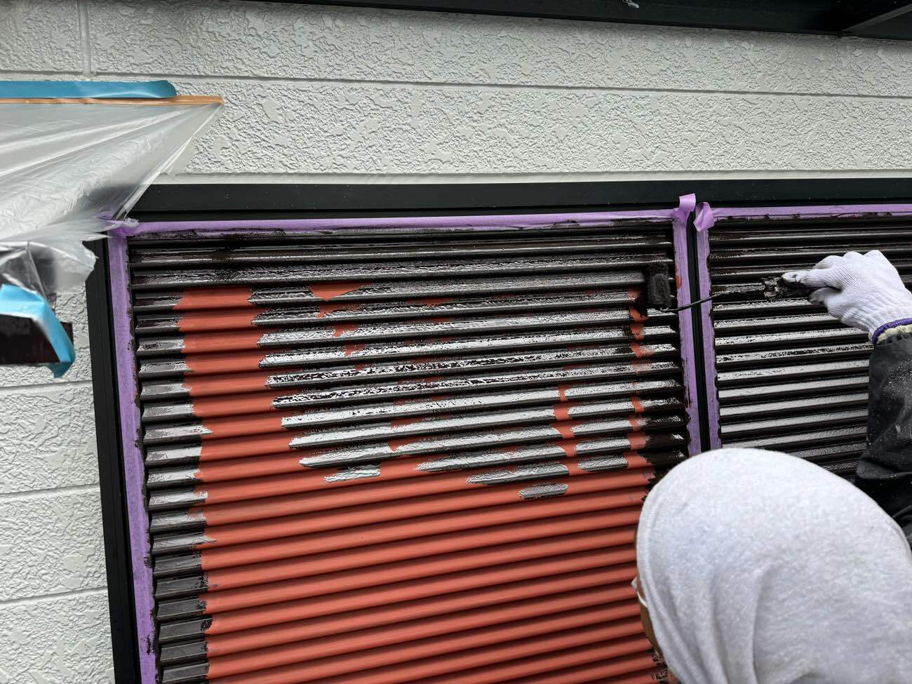 雨戸塗装:施工中