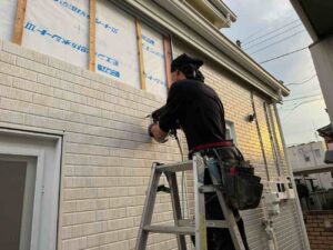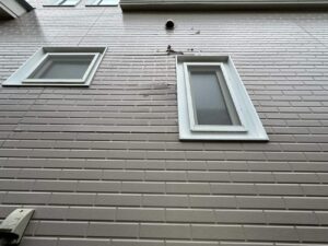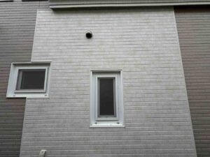 意匠性の高い窯業系サイディング壁。通気工法を用いてサイディング壁の部分張替え工事を行いました。