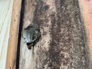 要因②として疑われるのが、お風呂場の換気扇ダクト(排気管)と、外壁の換気フードの接続部分からの「湿気漏れ」です。