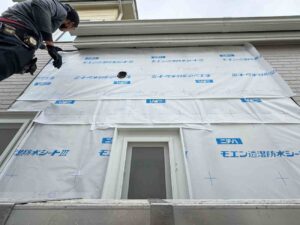 具体的には、状態の良い既存の胴縁は活かしつつ、既存の順番と同様に透湿防水シートを新設します。さらにその上(既存胴縁のある箇所)に新たな胴縁を二重に新設する工法をとりました。 これにより、これまで実質的に「直貼り(通気層がない状態)」となっていた構造を改善し、壁の内部に確実な空気の通り道を作ってから、新しいサイディングを張る設計としました。