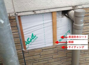当然のことですが、再発防止を視野に入れる必要があり、単純に不具合部分のサイディングを張替えただけでは根本の解決には至らないので、外壁内部の通気性を高めるため「通気見切り材」などの取付けを含めます。